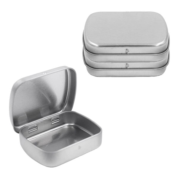 AKOAK 3 Pcs 2.4 x 1.7 x 0.6 Inches Rectangular Empty Hinged Tins Box Containers for First Aid Kit,Survival Kits,Storage,Herbs,Pills,Crafts and More (Silver)