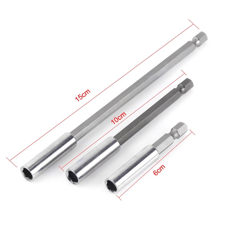 Akozon Bit Holder Set, 3 Pieces Drill Screwdriver Extension Rod Magnetic Drill Hex Shank Extension Holder 1/4 Inch Shank Tool