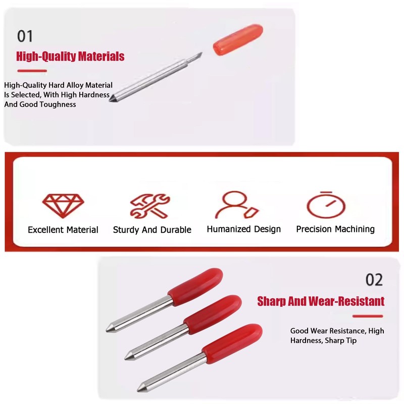 - High-quality materials: these carbide cutting blades are made of rust-resistant and durable carbide with long service life and smooth cutting of objects. The 45° blade is the standard blade for vinyl cutters.