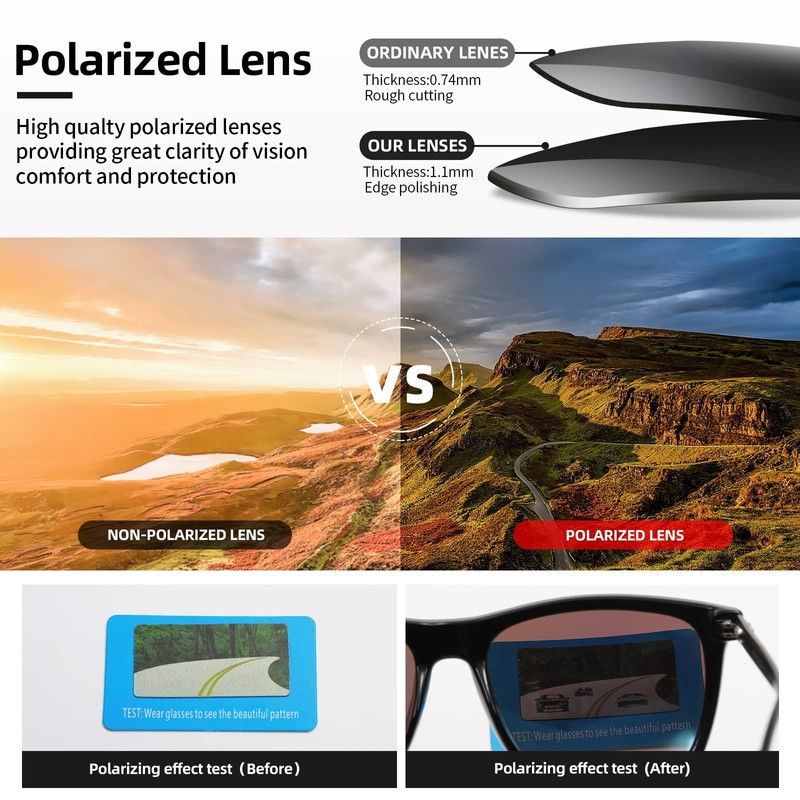 - High definition lenses: multi-coating layers lens protects your eyes from annoying glare and dizziness with high definition and restores true colours, also shatterproof, scratch-resistant and easy to clean.