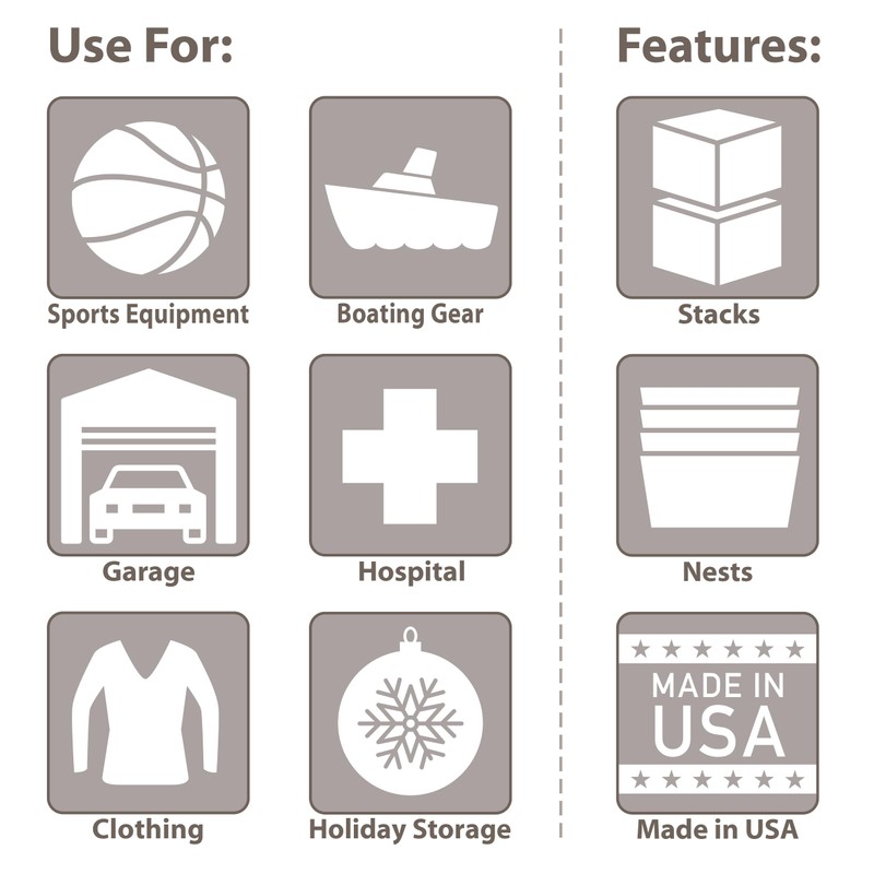 - DIMENSIONS: With dimensions of 21-Inch x 15-Inch x 17-Inch, these large storage bins are perfect for organizing a variety of items; Proudly made in the USA, this storage tote is versatile for all activities