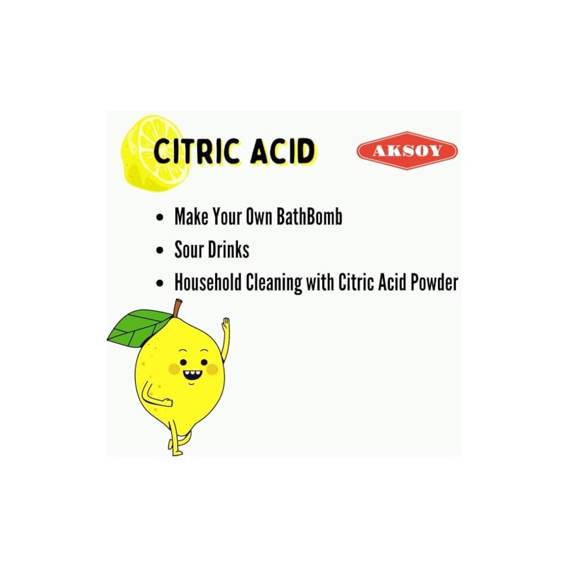 AKSOY Citric Acid Food Grade 1000gr || Non-GMO, Anhydrous, Make Your Own BathBomb, Gluten-Free, No Additives, Sour Drinks, Household Cleaning with Citric Acid Powder (Packaging may vary)