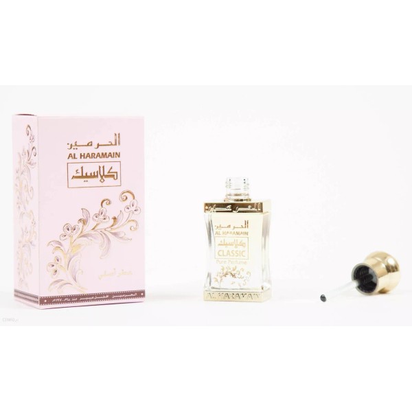 Classic by Al Haramain is an oriental spicy-floral perfume oil suitable for women and men. Classic is a fresh take on the timeless oriental notes, creating a rare and harmonious blend that takes the wearer on a sensory journey all through the day. It is a fragrance that has excellent longevity, staying on the skin all day. Classic also has exceptional sillage that builds an aura of class around the wearer. It is a colourless perfume and comes in a classy transparent bottle with dab-on stick applicator. A classical Arabian attar comprising of floral, rosy and slightly woody notes with hints of musk vanilla.