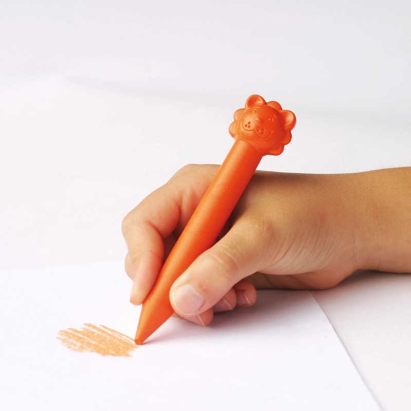 Aladine 3042015 Wachsmalstifte mit Tierköpfen, 12 verschiedene Farben und Tiere, für Kinder ab 2 Jahren