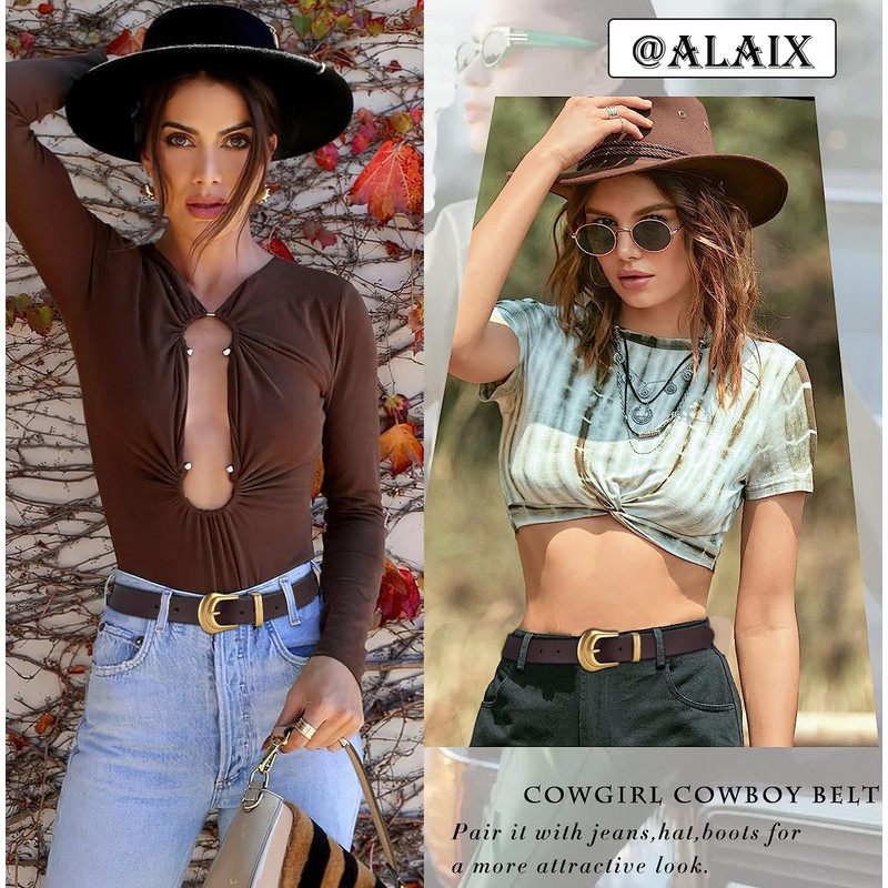 ALAIX Women's Belt Western Belts Silver Gold Buckle Black Leather Belt Pants Jeans Belts for Women