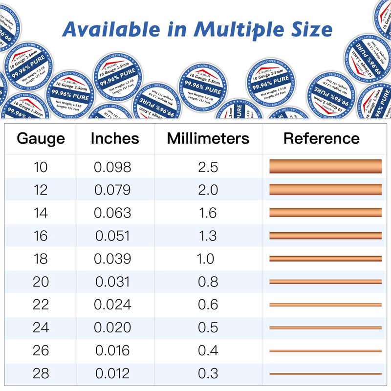 - 【Múltiples opciones】: nuestro peso neto de 0.45 libras, el alambre de cobre de calibre 18 mide 1.0 mm de diámetro, 100 pies de longitud. Cada alambre de cobre sólido está empaquetado con un carrete. Hay más tamaño de alambre de joyería para que elijas.