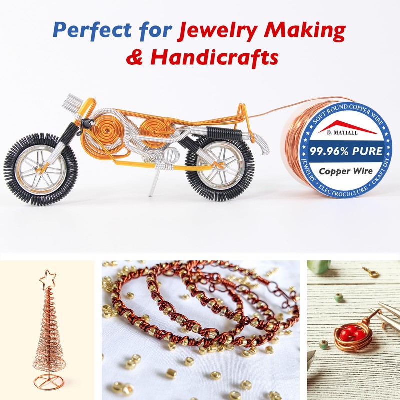 - 【Múltiples opciones】: nuestro peso neto de 1 libra, alambre de cobre de calibre 20 mide 0,8 mm de diámetro, 400 pies de longitud. Cada alambre de cobre sólido está empaquetado con un carrete. Hay más tamaño de alambre de joyería para que elijas.
