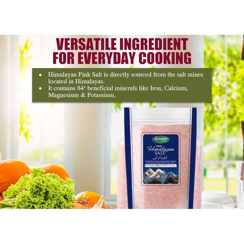 Alamgeer Pink Himalayan Salt 400g (FINE) | Natural | Premium Unrefined | Suitable for Seasoning & Cooking | Resealable Pouch.