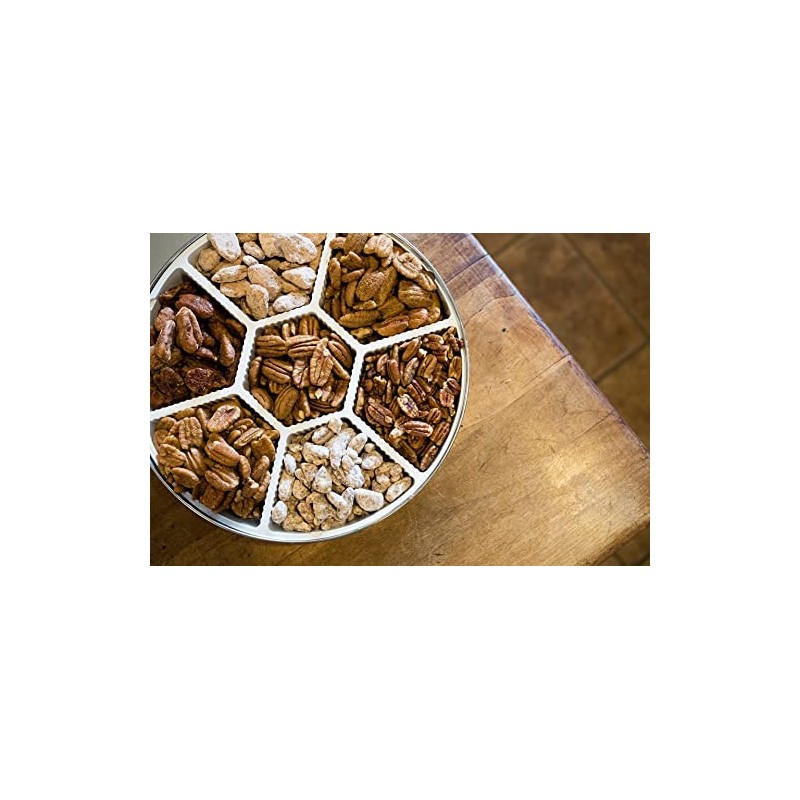 Seven flavors of gourmet Texas pecans are specially blended to make your taste buds happy. This pecan tin features sweet and spicy pecans including: roasted buttered and salted pecans; hot & spicy pecans; jalapeno pecans; praline pecan halves; cinnamon pecans; and, honey-toasted pecans. *Candies vary due to supply on hand and shipping chocolate in warmer months.