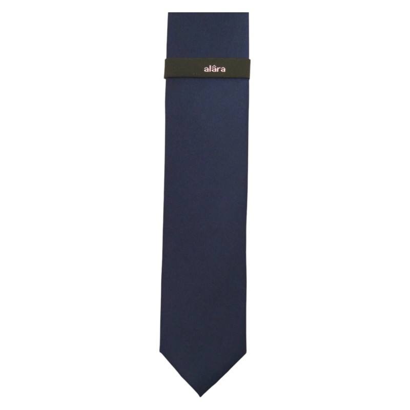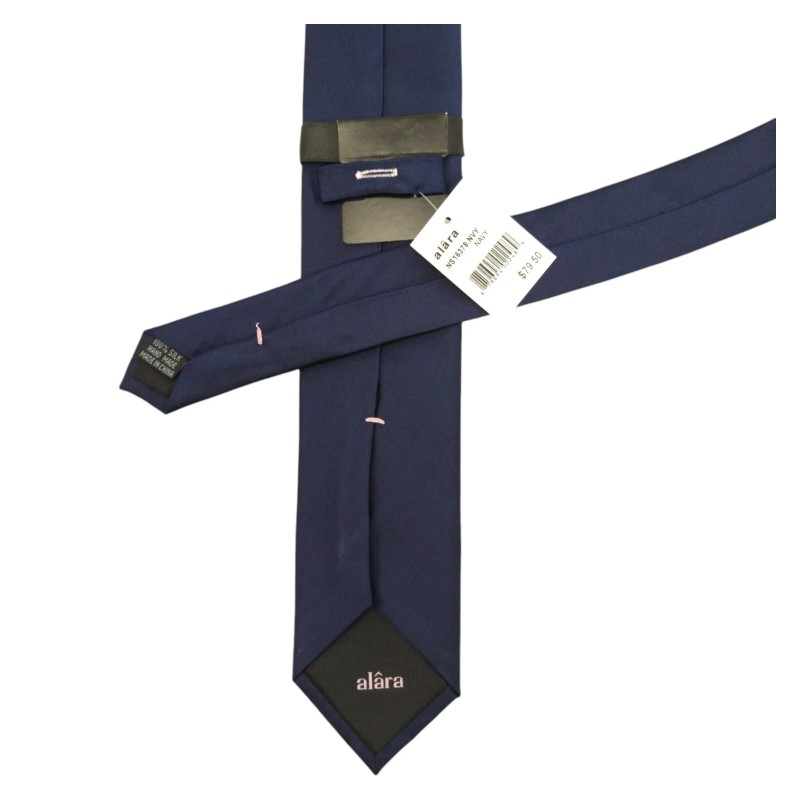 ALARA Mens Navy Blue Silk Tie Solid Satin Designer Slim 2.75 Fashion Necktie $80