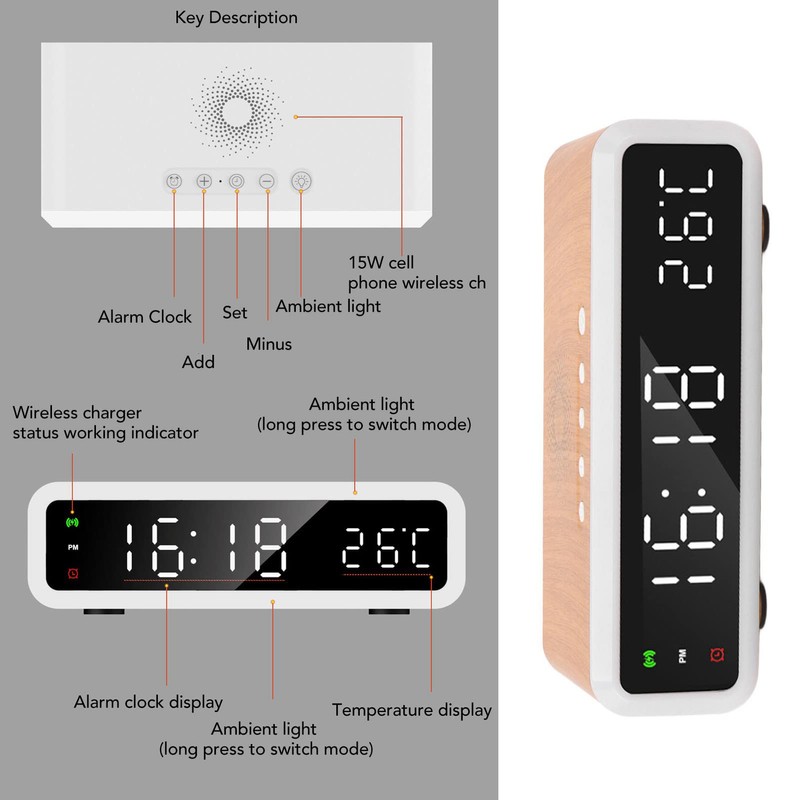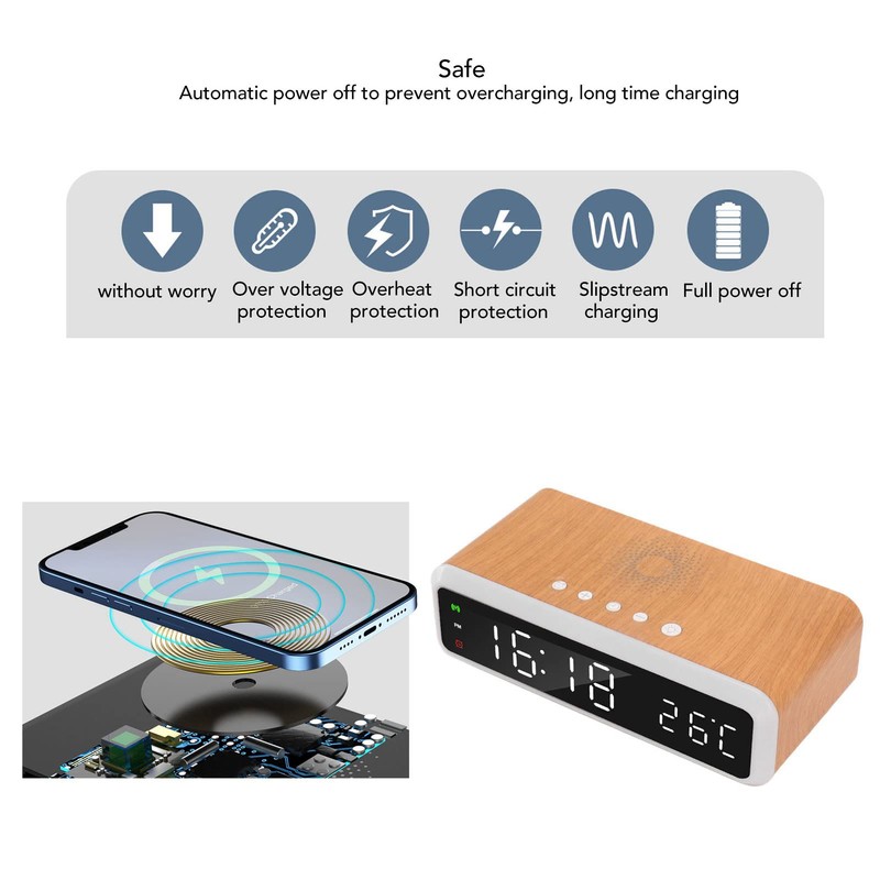 - 【Fast Charge】Multifunctional alarm clock is 15W high performance super fast charging, high efficiency, fast charging, support for IOS and Android systems.