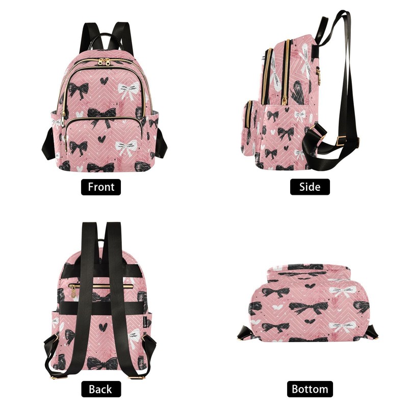 ALAZA Gift Pink Bow Pattern Mini Backpack Purse for Women Travel Bag Lightweight Shoulder Bag Fashion Daypack