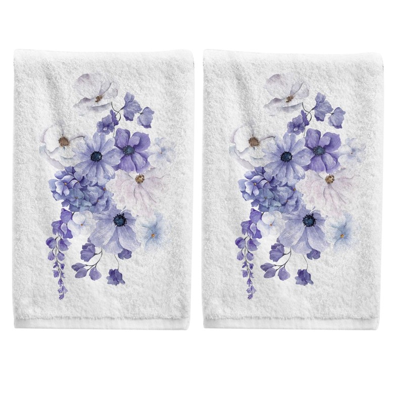 ALAZA Lavender Purple Flower Camellia Hand Towels 100 Percent Cotton Soft Bathroom Decorative Bath Towels Luxury Absorbent Face Towel Set for Beach Gym Spa 16x30 Inch