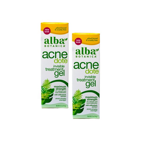 Alba Botanica Acne Dote Invisible Treatment Gel, Maximum Strength, 0.5 oz (Pack of 2)