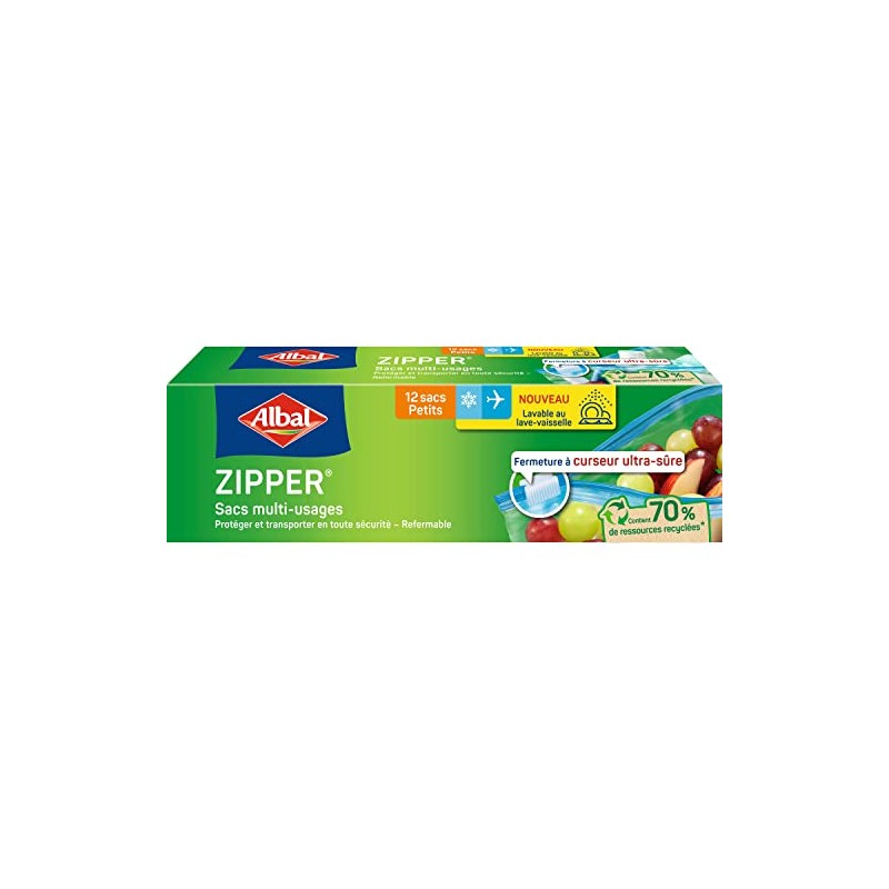 Albal Small 1 Litre Zip Bags 70% Recycled Resources Super Secure Zip Heavy Duty Dishwasher Safe Food Safe 20 x 15 cm