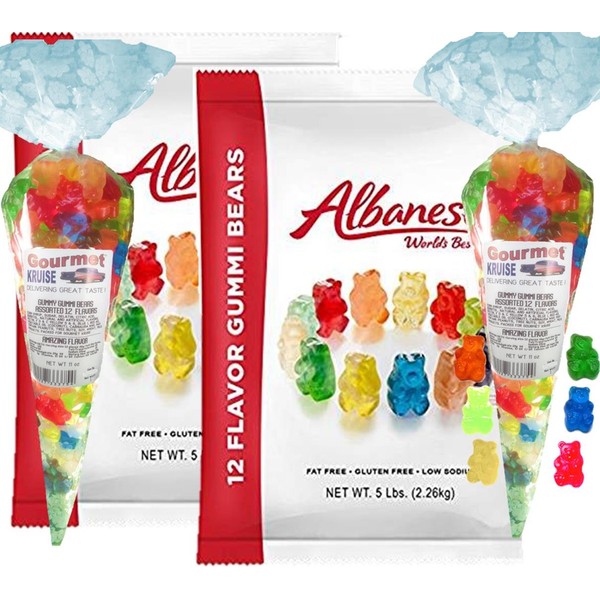 Albanese 12 Flavor Gummi Bears (2- 5lb bags) Plus (2-11oz) Assorted 12 Flavor Gummy Bears Gourmet Kruise Signature Gift Bags (NET WT 182 OZ) 2 Item Bundle