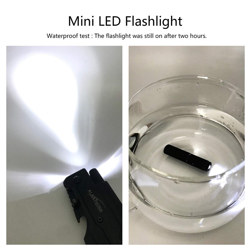 - Multi-function:Knife, LED Light(It uses 4 batteries, size LR621), SeatBelt Cutter, Glass Breaker, Magnesium Fire Starter, Bottle Opener.