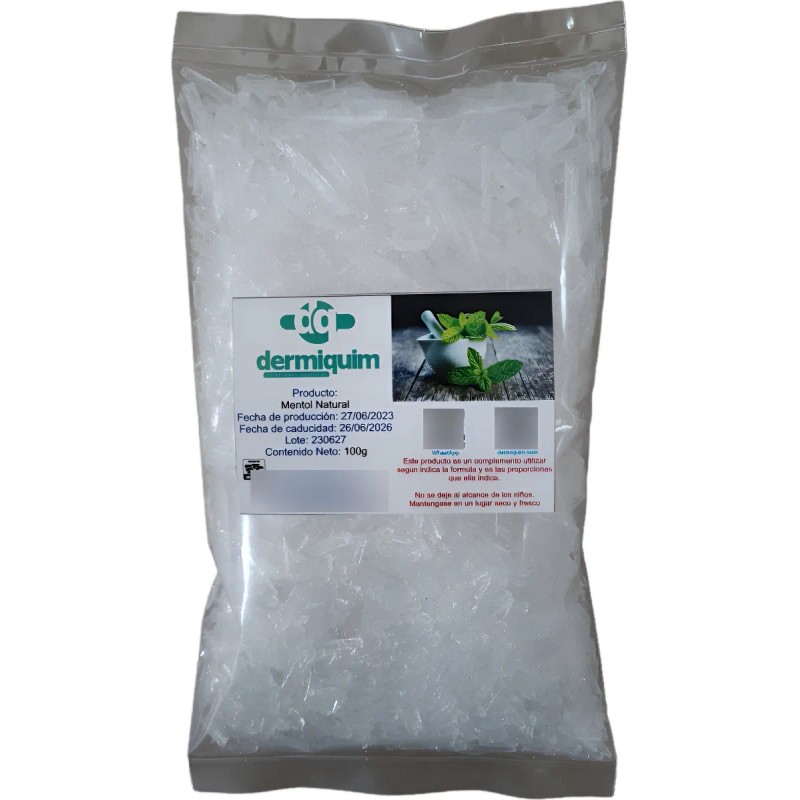 El mentol un compuesto que se encuentra en los aceites de la planta de la menta (Mentha Arvensis), posee efectos refrescantes y refrigerantes. Se usa en la elaboración de cremas, ungüentos, geles, dentífricos, bálsamos, etc.