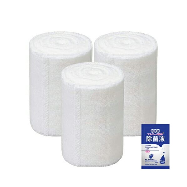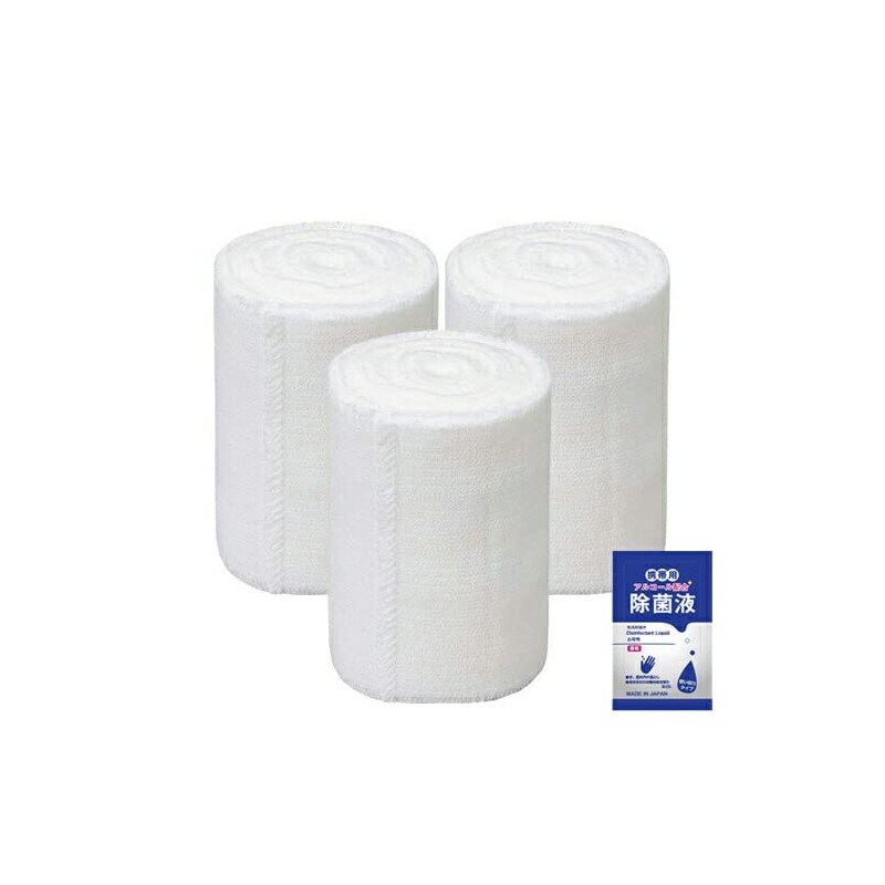 アルケア(Alcare) オールコットン弾力包帯 エラスコット 75mm×4.5m(伸長) × 3巻 + 除菌液2ml付き