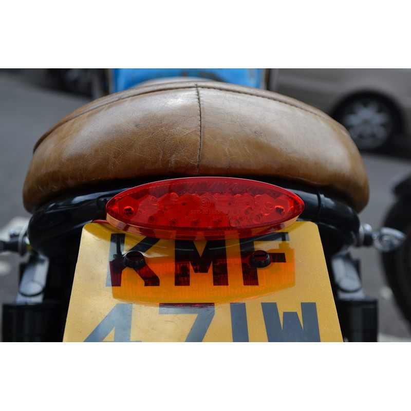 Alchemy Parts Motorbike Taillight LED Stop Run Brake Oval 12 Volt with Licence Number Plate Light for Café Racer Scrambler Street Bike Back End Flush Mount Tail Tidy Red Light Lens