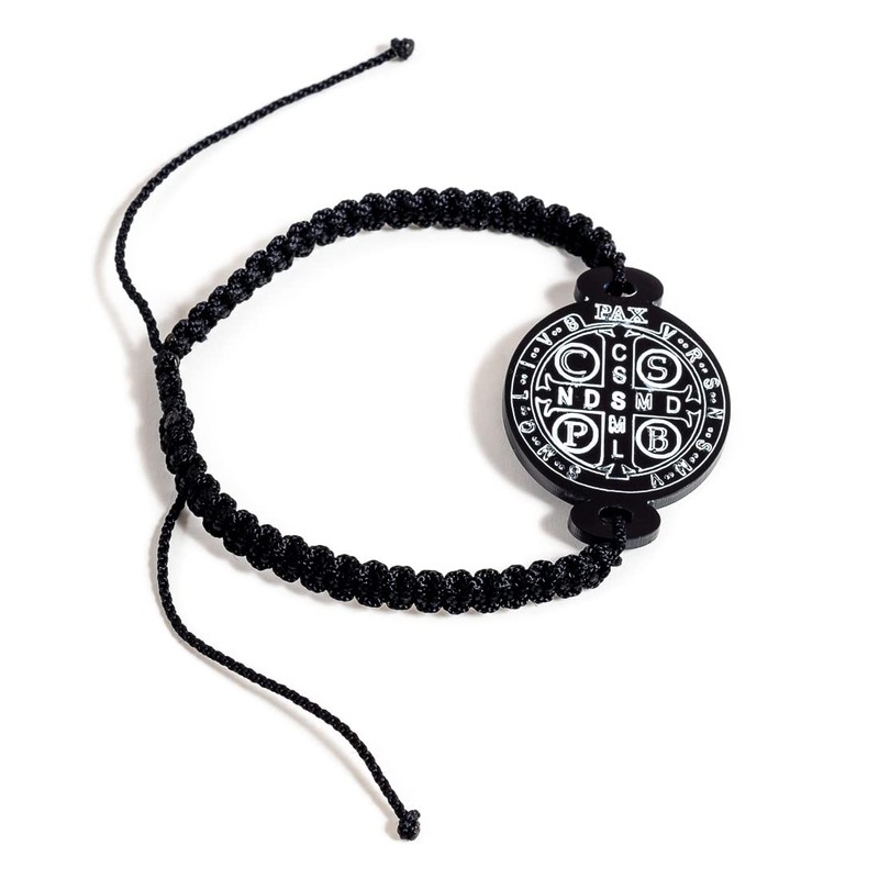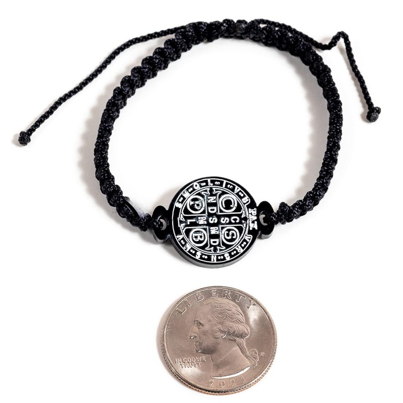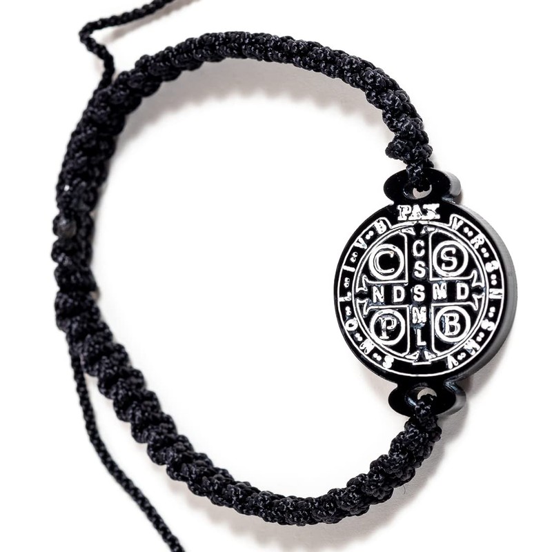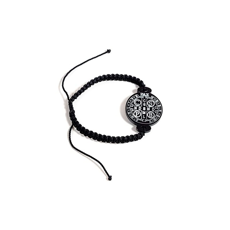 Alea Collection Spiritual Powerful St Benedict Medallion Black String Bracelet for Woman Talisman Protector