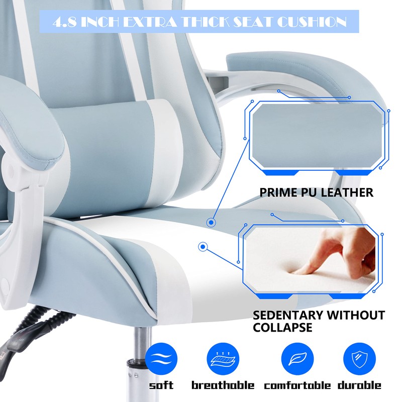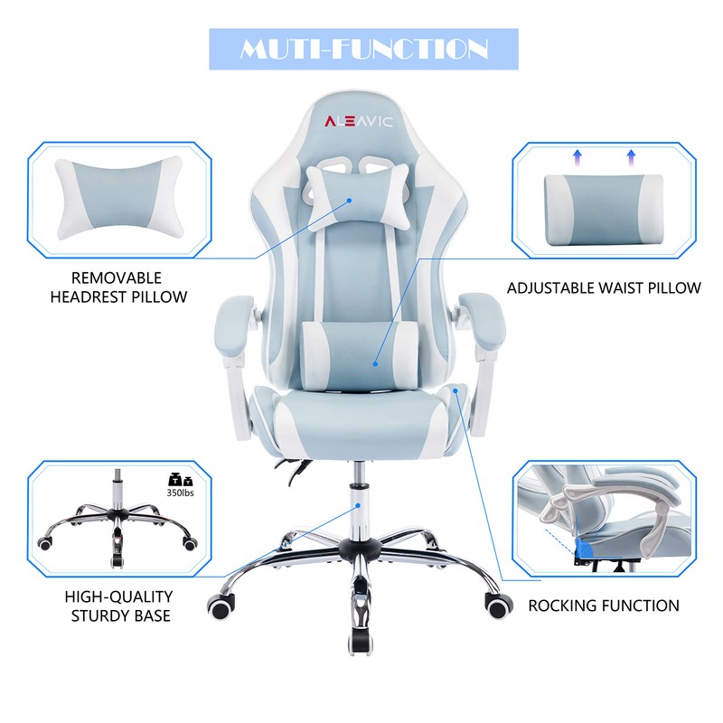 ALEAVIC Gaming Chair for Adults, High Back Ergonomic Computer Gaming Chair with Headrest and Lumbar Support, Blue