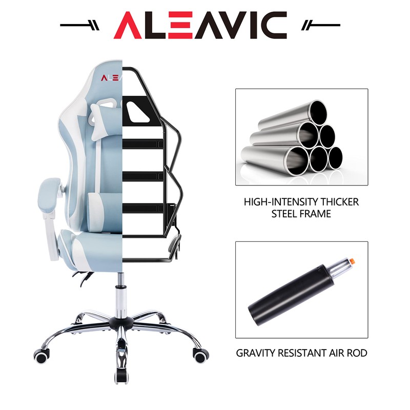 - 【STURDY CONSTRUCTION & ECO FRIENDLY MATERIAL】 ALEAVIC gaming chair is covered strong alloy frame. Thick padded seat cushion made of high density foam is more comfortable and not easy to deform. Heavy-duty chair base and nylon smooth-rolling casters for great stability and mobility. Premium PU Faux leather, easy to maintain & fade resistant.