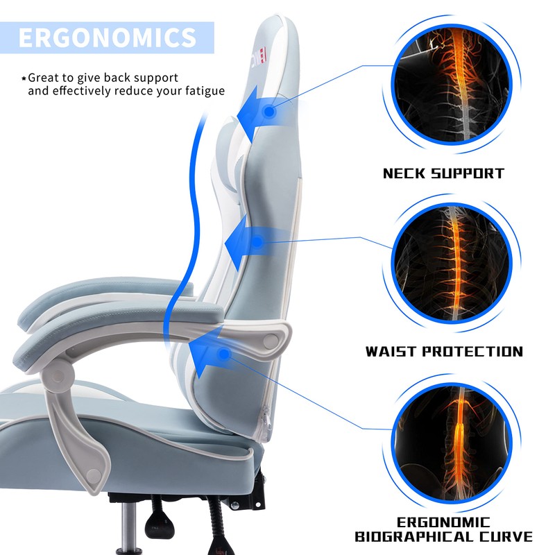 - 【ERGONOMIC DESIGN】 Features high back body-hugging design, gaming chair for adults is presented for maxium comfort ergonomic construction and padded backrest and headrest. Keep you focus on your game or work while helping your back stay comfortable and relaxation.