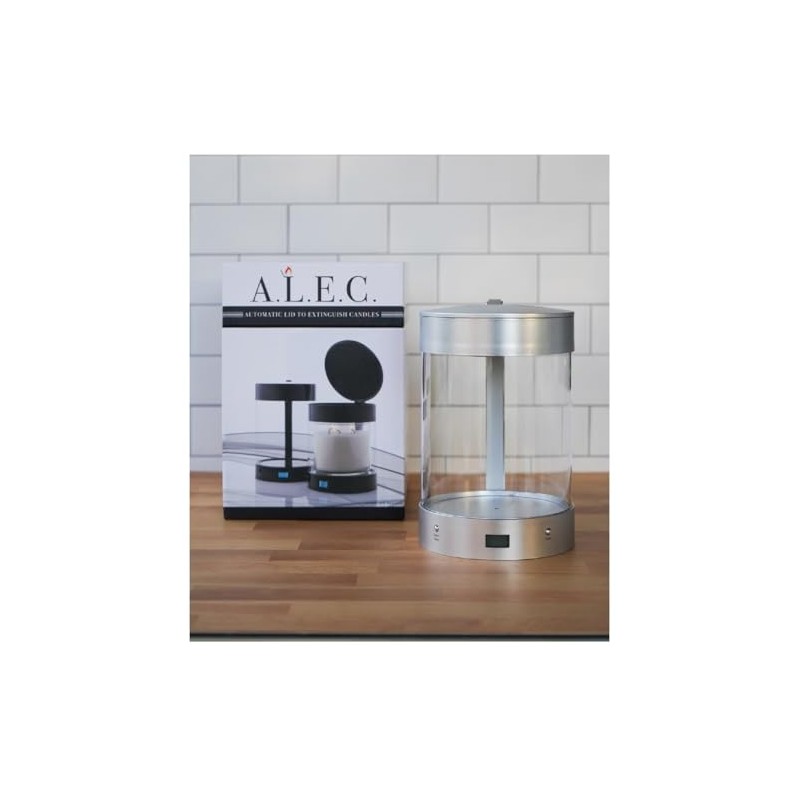 - Candle Care Made Safe & Simple: Feel the comfort knowing your candle flame will automatically be extinguished or snuffed with the automatic self-closing lid. Just simply set the digital timer in 30-minute increments, up to 3 hours. As soon as the timer reaches zero, the lid will automatically close. A simple 3 hour charge will give over 50 hours of use. Want more? Leave it plugged in and ALEC will continually be charged and ready for candle time.