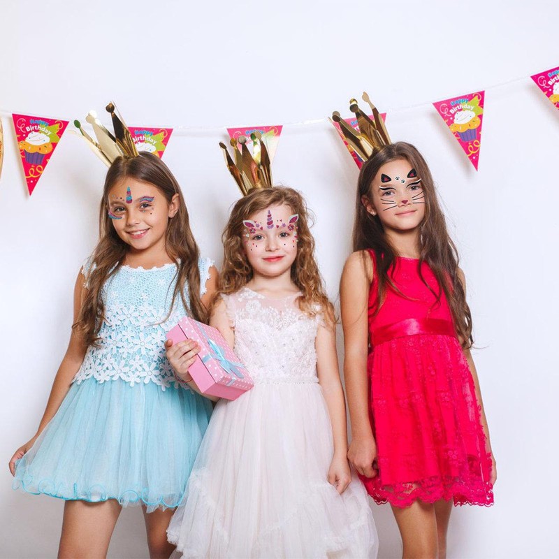 - Easy to apply/remove: The temporary unicorn face tattoo for theme party lasts 2 to 5 days, depending on where they are attached and how well you care for them. Make sure you apply the wrong tattoo to completely dry skin and allow it to cure for about 30 minutes so that the adhesive has time to bond. Care for your tattoo: Avoid soap, sunscreen, lotions or oils nearby or on your tattoo