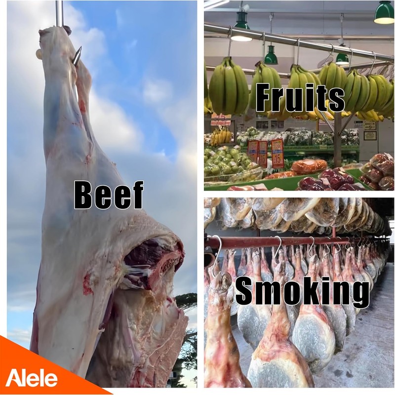 Alele Meat Hook 4pack Heavy Duty S-Hooks 10" Stainless Steel Meat Hooks Processing Butcher Meat Hooks for Butchering 4 Pack (10inch 8mm 4p)