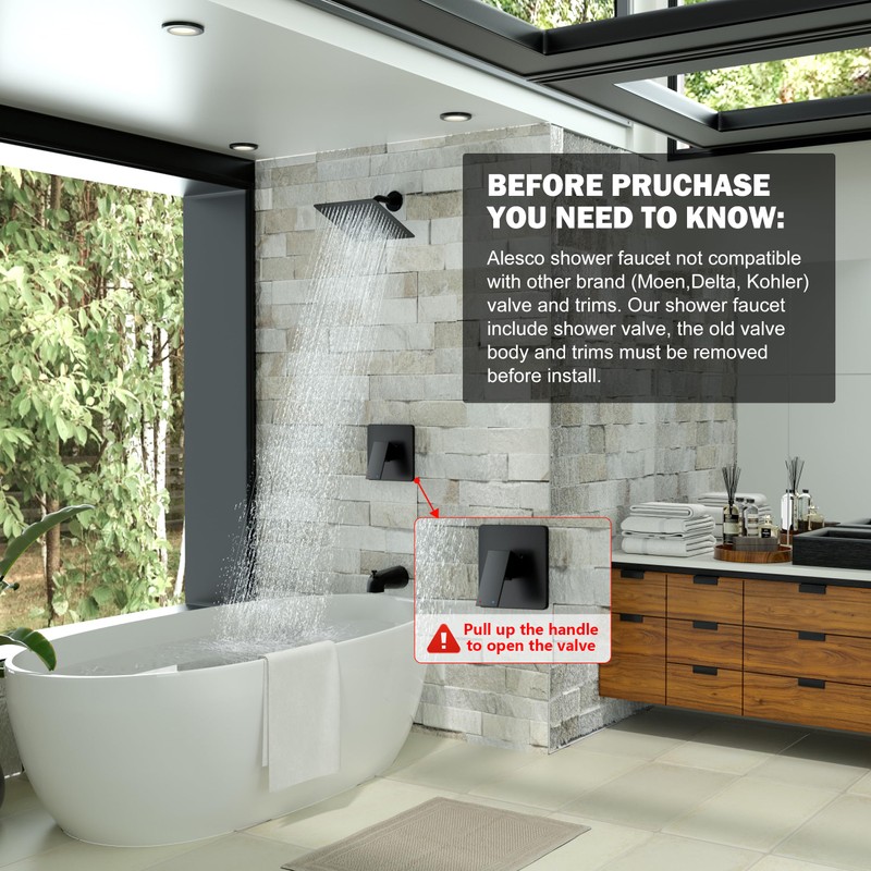 - IMPORTANT: Alesco shower trim kit not-compatible with other brands valves or cartridges, NOT-suitable for only replace shower trims, if you want to install our shower faucet, you may have to tear out the tiles or alter the plumbing behind the wall and remove the old valve body