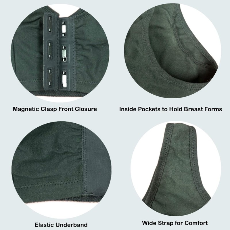 Alessandra B Magnetic Front Closure Pocketed Adaptive Bra - Easy On Front Closure Mastectomy Bra Black