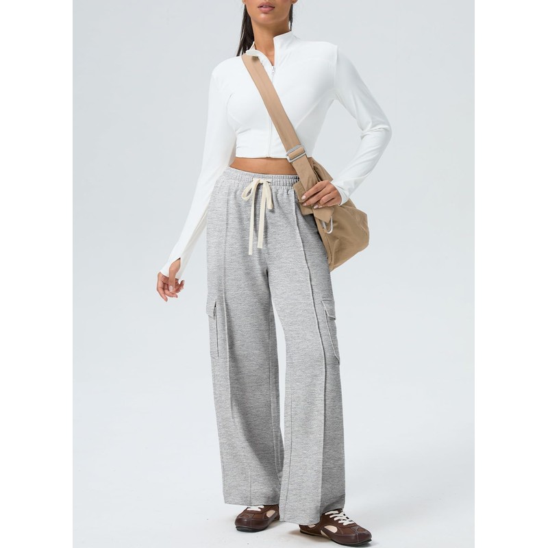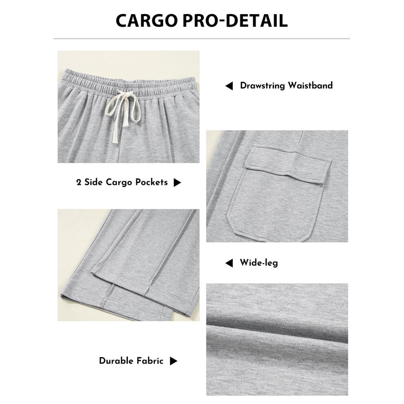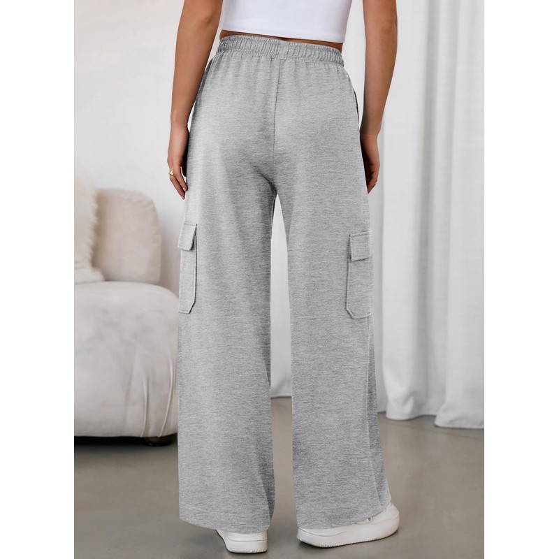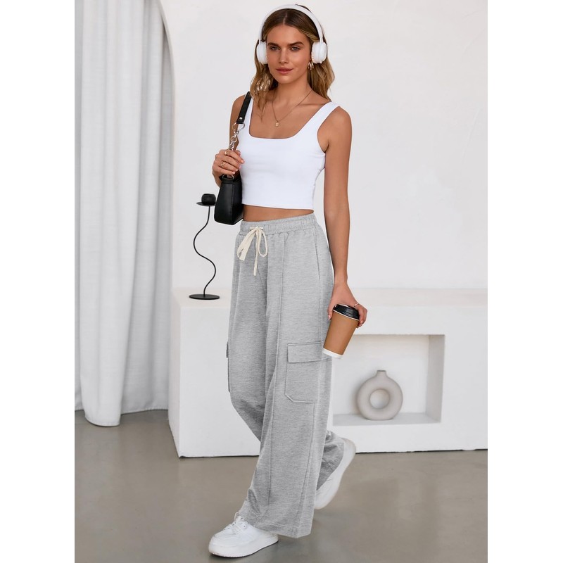 Aleumdr Women's Wide Leg Cargo Sweatpants Casual Loose Pants Drawstring High Waisted Baggy Lounge Pants with Pockets