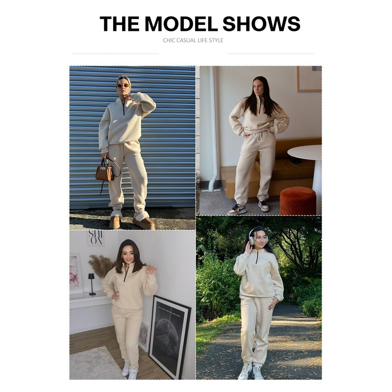 - Features: This athleisure women tracksuit sets designed a long sleeves quarter zipper hoodie sweatshirt with a joggers pants. Both are designed in simply solid color and basic design, and they will never go out of date