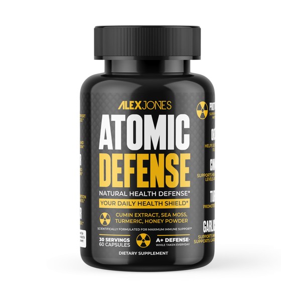 Alex Jones Naturals - Atomic Defense - Natural Health Defense with Cumin Extract, Trumeric, Sea Moss, Honey Powder, for Gut Health, Immune Boost, Antioxidants, Vitality, Energy Support