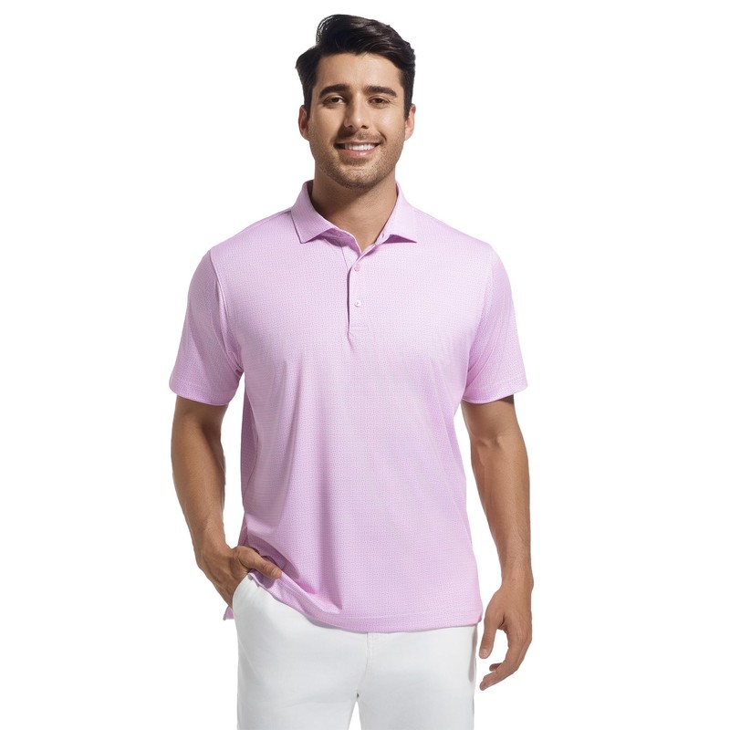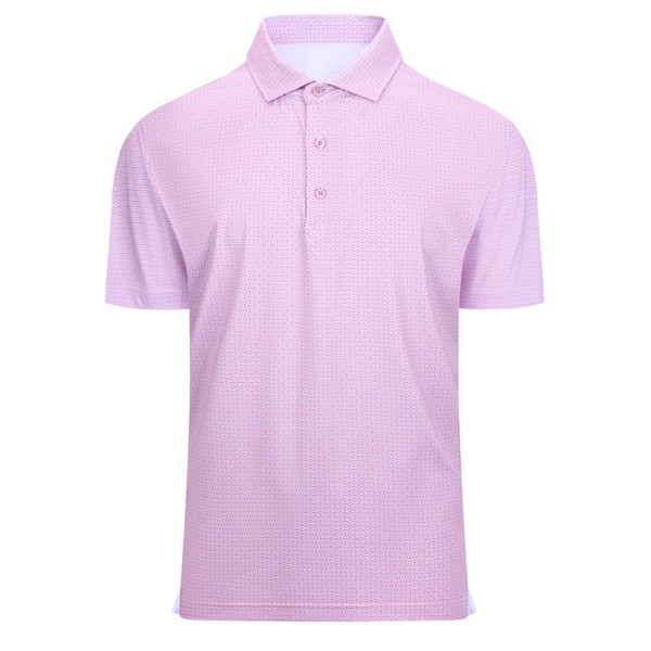 Alex Vando Mens Golf Shirt Moisture Wicking Classic Print Golf Shirts for Men,Pink Dots,L