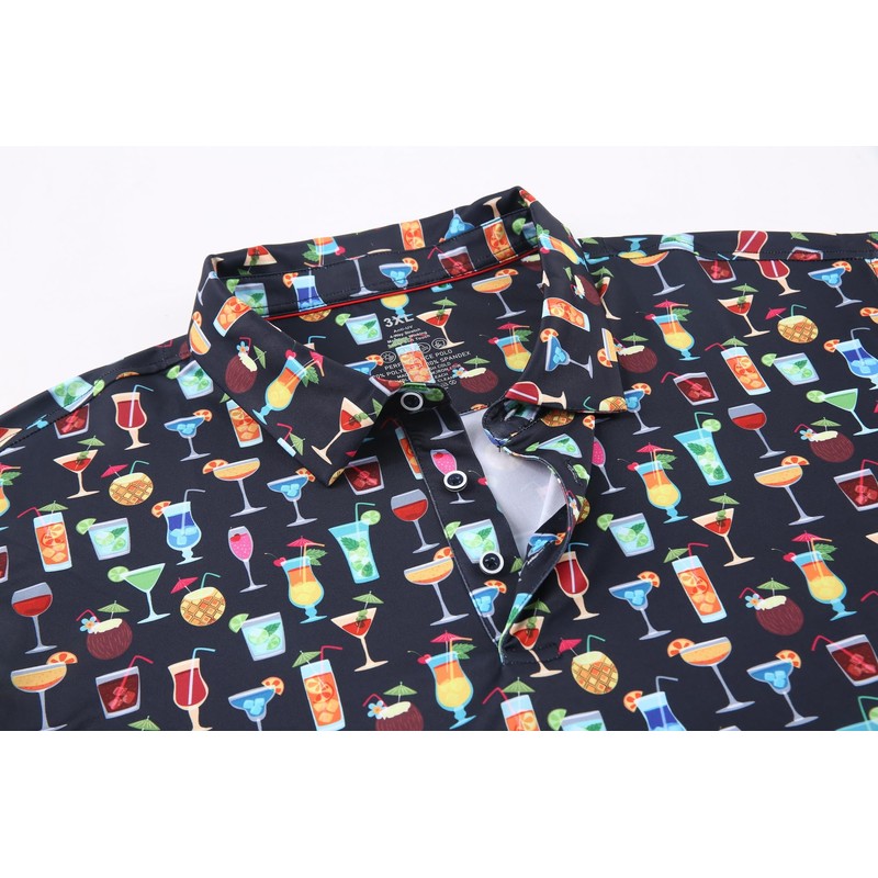 Alex Vando Mens Hawaiian Golf Shirt Moisture Wicking Digital Print Golf Shirts for Men,Black Drinking,L