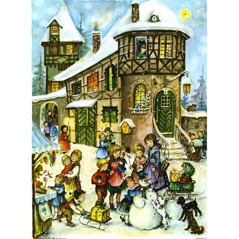 - The detailed picture has 24 little doors to open. Each door has a little picture behind it. The tradition is to open one door each day from December 1 thru December 24. Children love to open a door a day as they count down to Christmas.