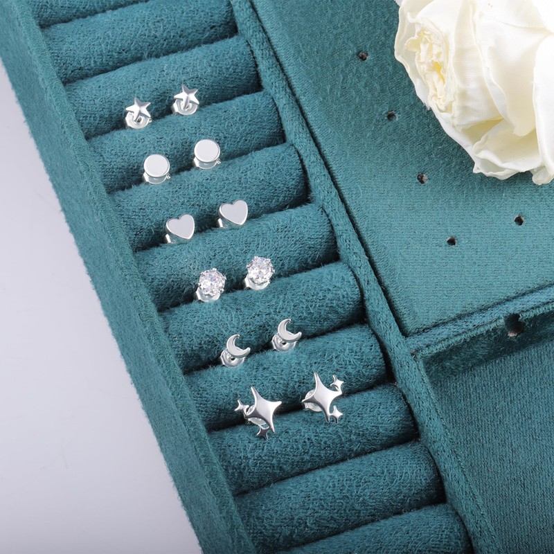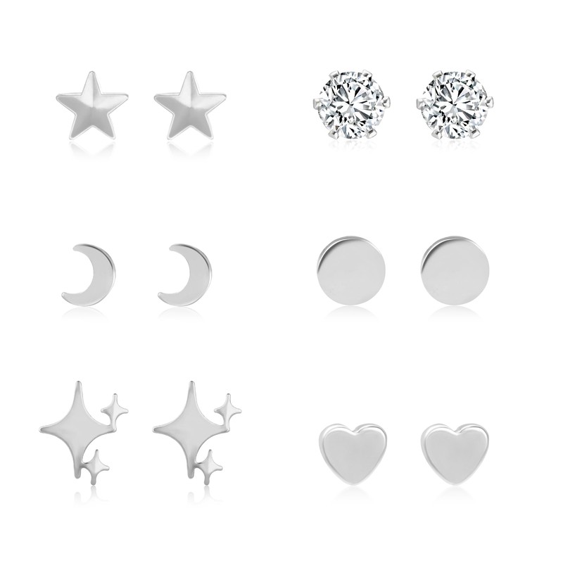 | Color: | 6 Pairs Small Silver Stud Earrings A |