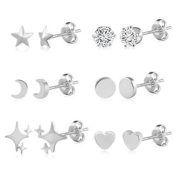 - Package includes: you will get 6 pairs of 925 sterling silver small stud earrings in different designs, 6 pairs butterfly backs with metal base and 6 pairs of silicone earring backs, enough for your replacement needs.
