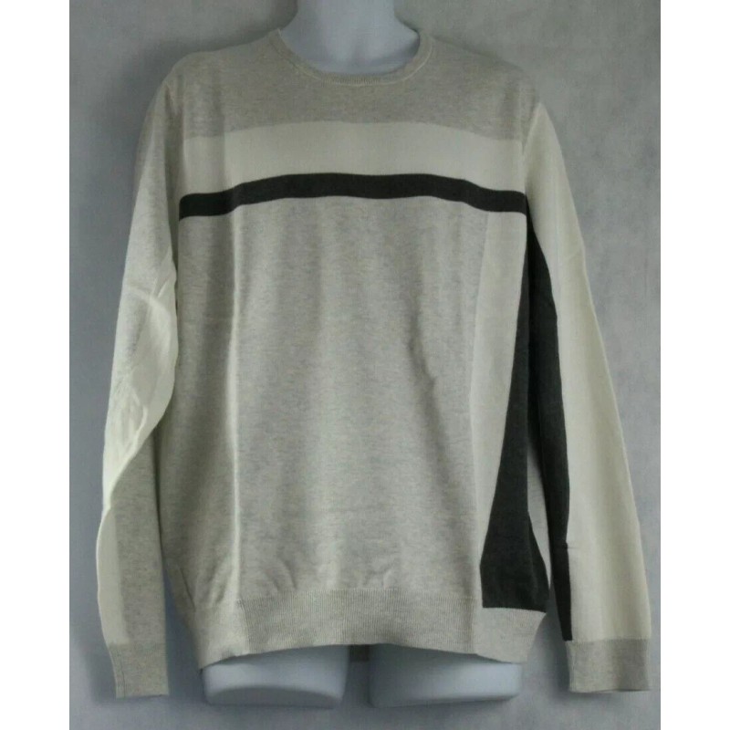 Alfani Men's Colorblocked Cotton Crewneck Pullover Sweater, Gray Multi, XL