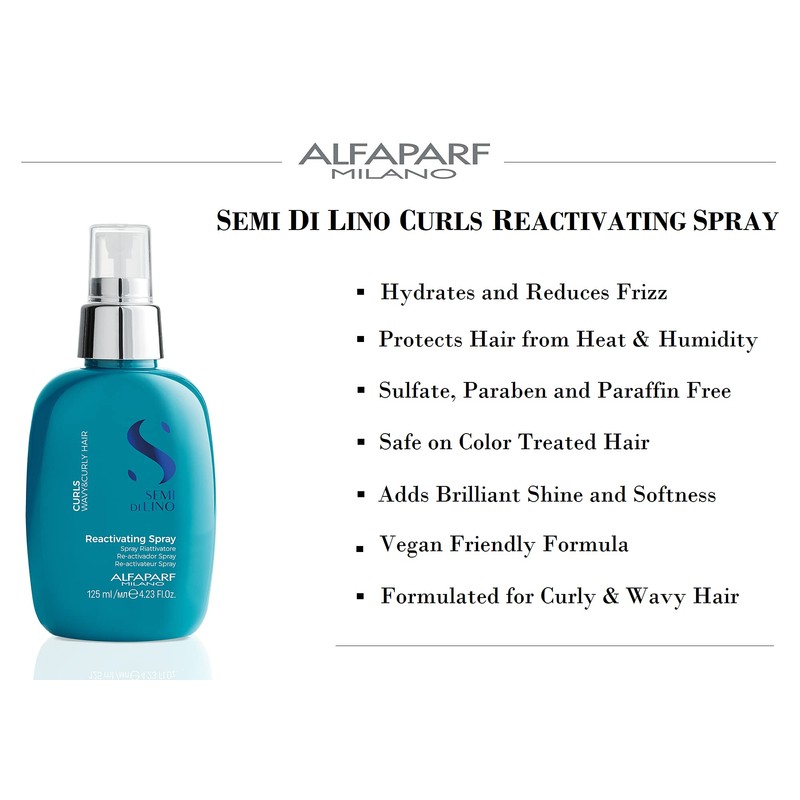 Alfaparf Milano Semi Di Lino Curls Reactivating Spray for Wavy and Curly Hair - Hydrates and Nourishes - Reduces Frizz - Humidity and Thermal Protection - Vegan-Friendly Formula - 4.23 fl. oz.