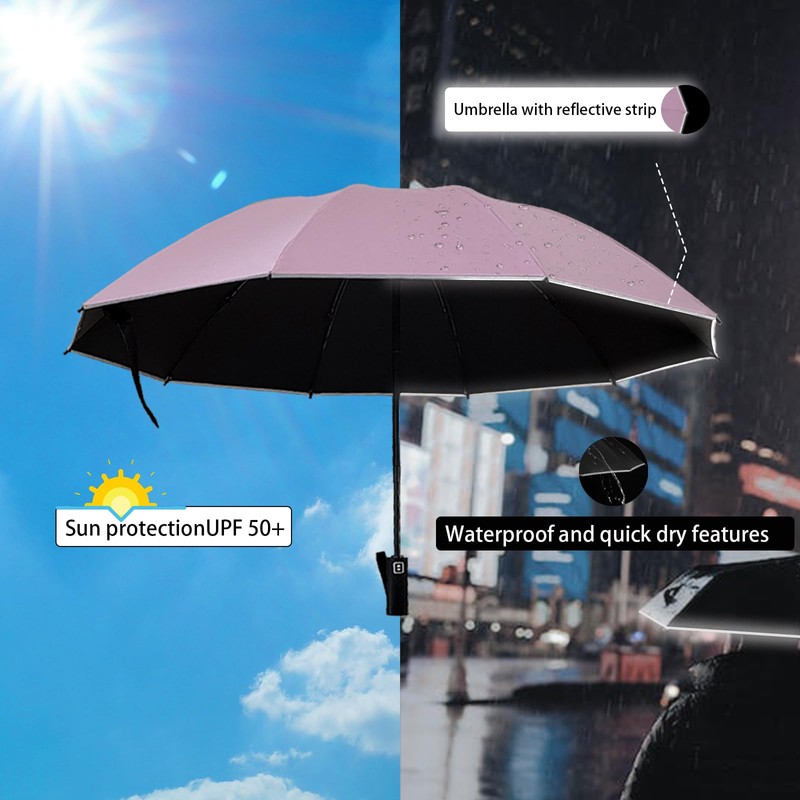 - Superior Umbrella for Rain Windproof:This inside-out windproof umbrella boasts 10 reinforced fiberglass ribs and a strong alloy steel shaft, lightweight as it is, also easy to withstand strong winds and heavy rain without turning inside out.