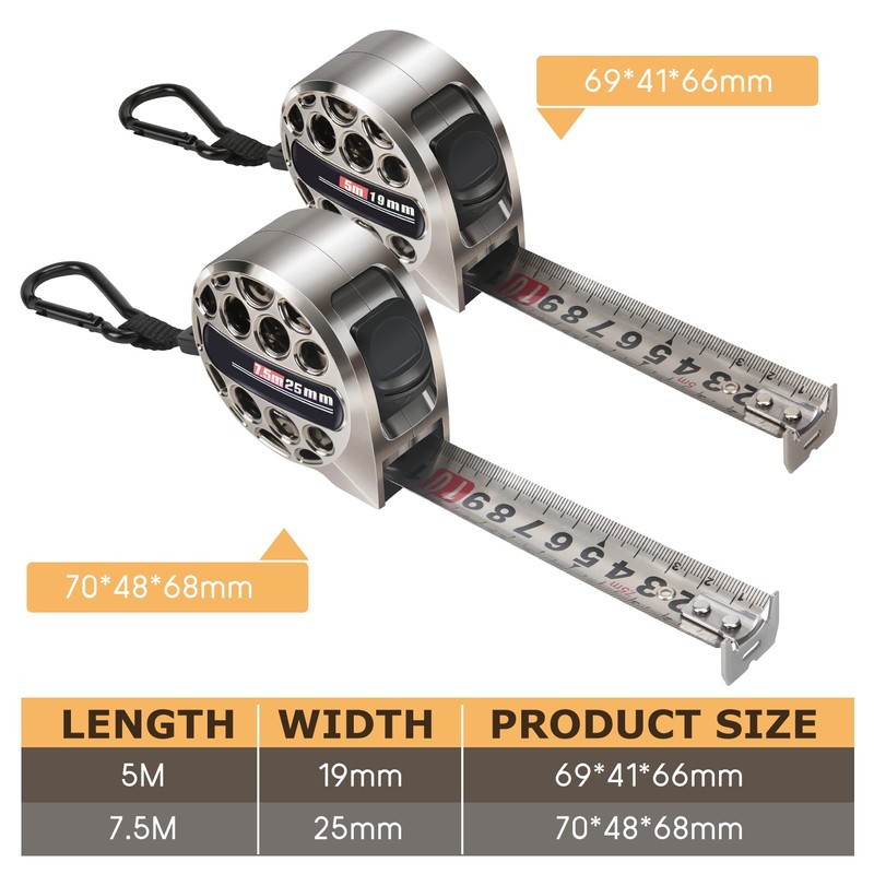 - 【High-quality material】 The shell adopts ABS electroplating process, which is resistant to falling and wear without leaving marks. Stainless Steel tape measure, tensile and not easy to corrode, longer practical life. Note:Due to the sharp edges of the tape measure, it is advisable to wear gloves when using it.