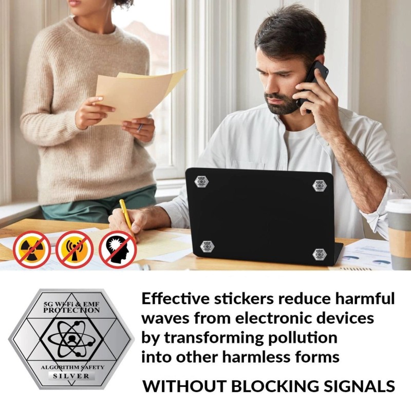 ALGORITHM SAFETY protection stickers use the most advanced technologies that help you stay protected against the threatening effects of 5G Wi-Fi, electro pollution, and Electromagnetic Field (EMF) waves