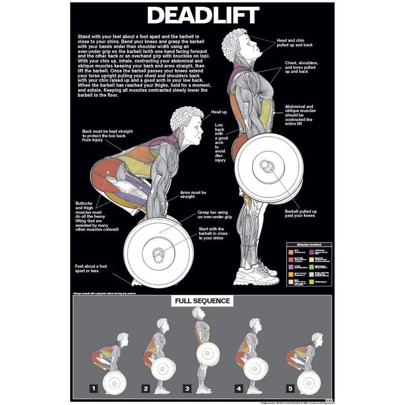 ALGRA Deadlift Poster Instructional Charts (18" x 24", Black/Dark Grey)