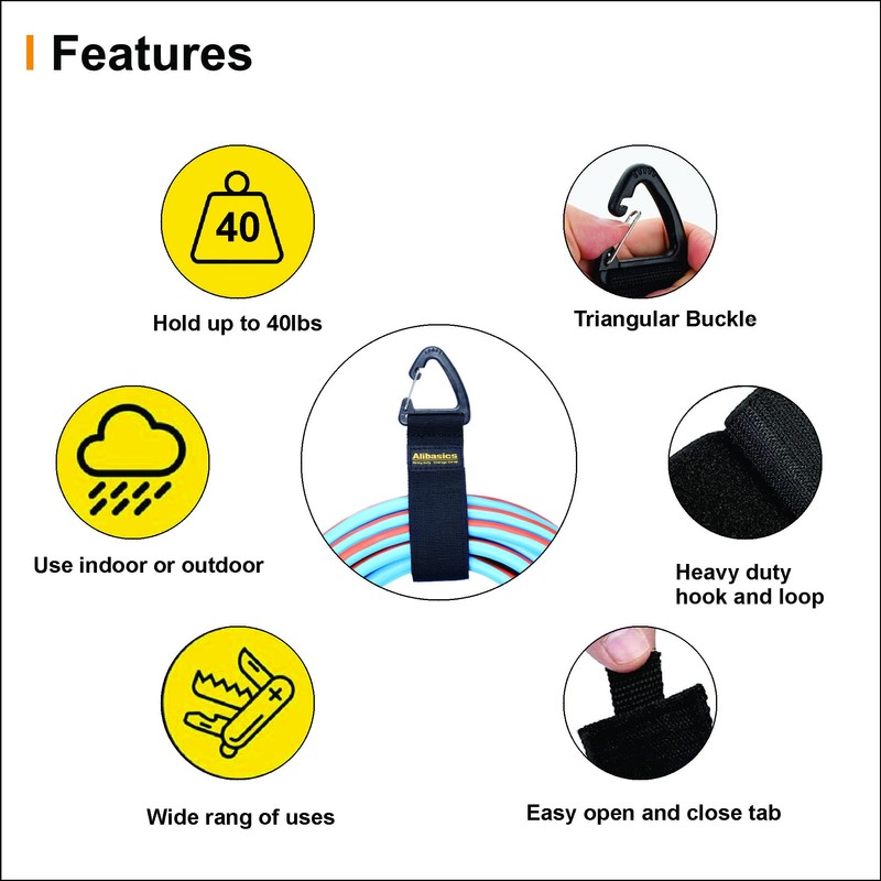 - These heavy-duty adjustable storage utility straps are a great organize solution for garage, storage room, workshop, utility room, gardens, boats and RV, etc., They are must-haves accessories for homeowner, handyman, contractor to make your storage and working environment becomes tidier and more unified. It's heavy-duty hook and loop fastening straps easily wrap around extension cords, garden hoses, air hoses, ropes, power tool cords, ski boots, bike helmets, climbing gear, camping equipment, and much more! Simply secure the straps around your gear for to keep everything together or hang the straps from the Triangle Buckle for a simple storage solution.