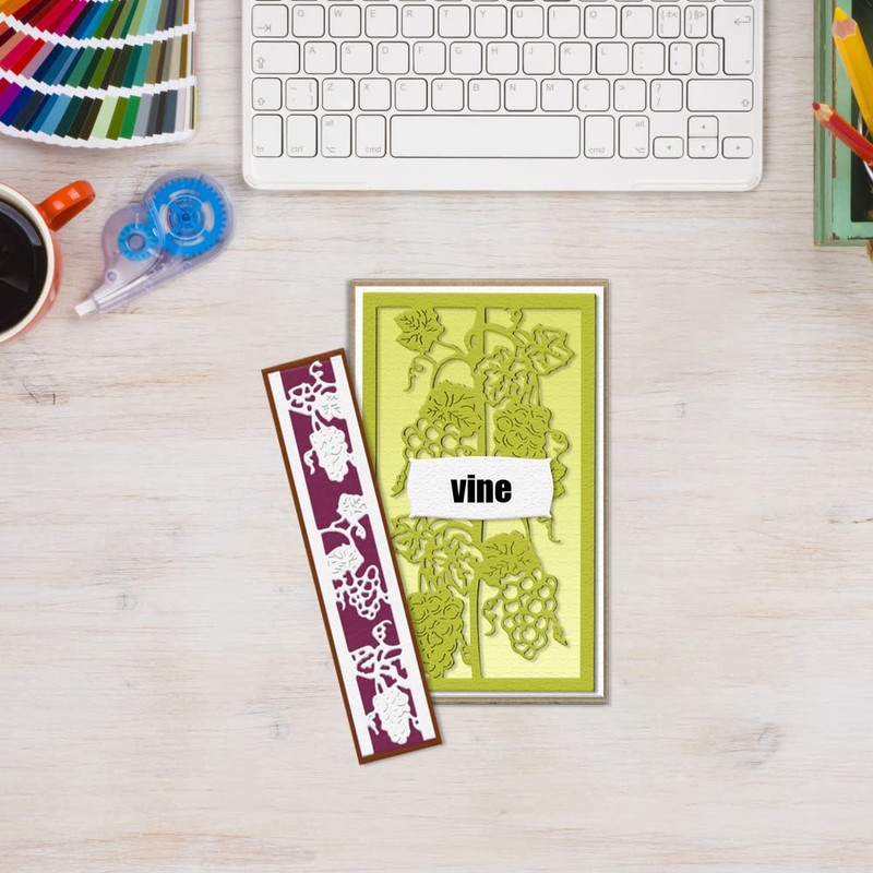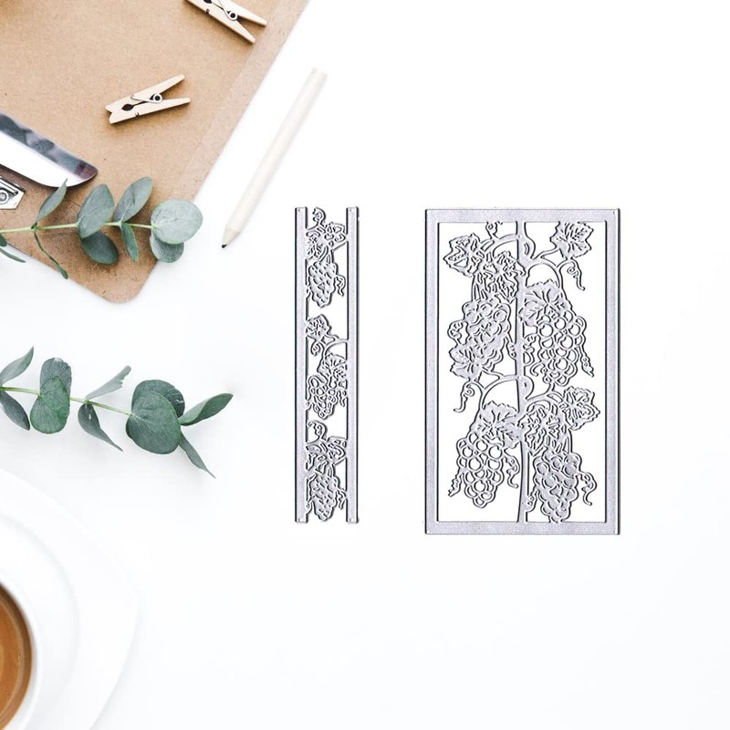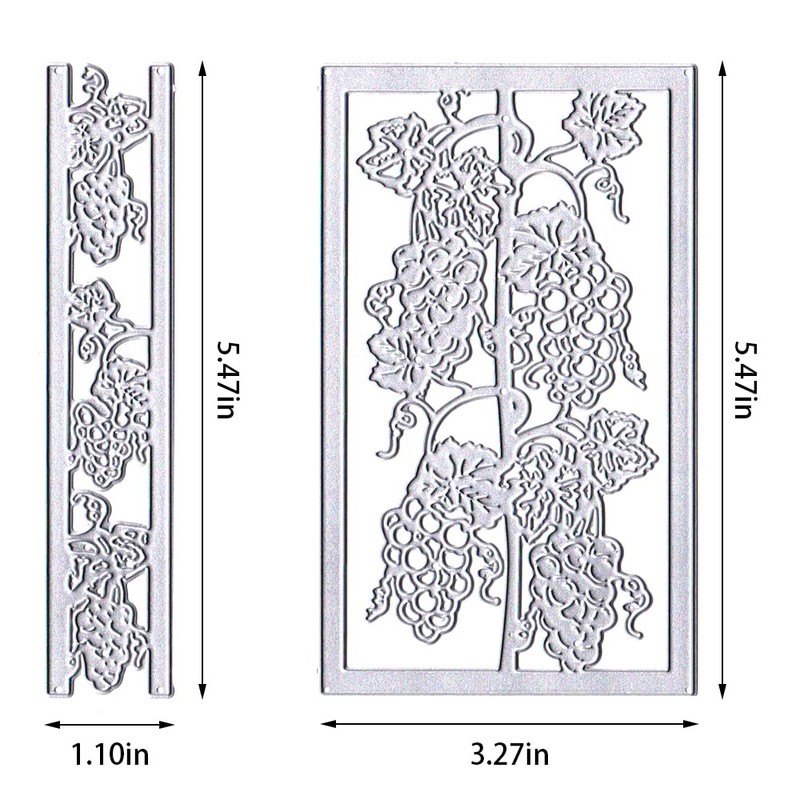 - Package Includes: 2 × summer grape vine frame background dies. The dimensions of cutting die please refer to the second picture of the main picture. Perfect for cards and scrapbook page accents.