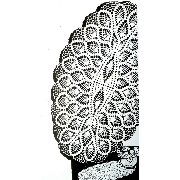 7333 DIRECTIONS FOR AN OVAL AND A ROUND DOILY IN THE PINEAPPLE PATTERN INCLUDES THREE SIZES OF EACH DEPENDING ON THE THREAD YOU CHOOSE. THE PATTERN IS COMPLETE.
